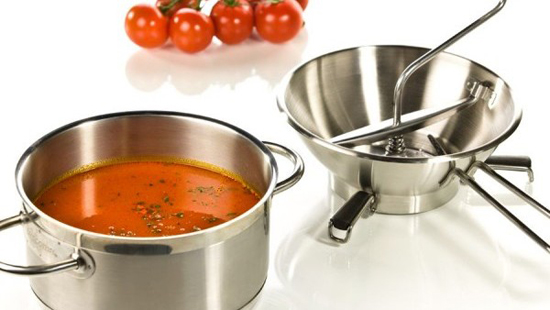Nerezový pasírovač Tescoma GrandCHEF se pasírovacími disky pro snadné a rychlé pasírování zeleniny a ovoce.